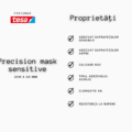 mascare, prezintă un suport special extrem de subțire rezistent la rupere, acoperit cu un compus adeziv acrilat și este