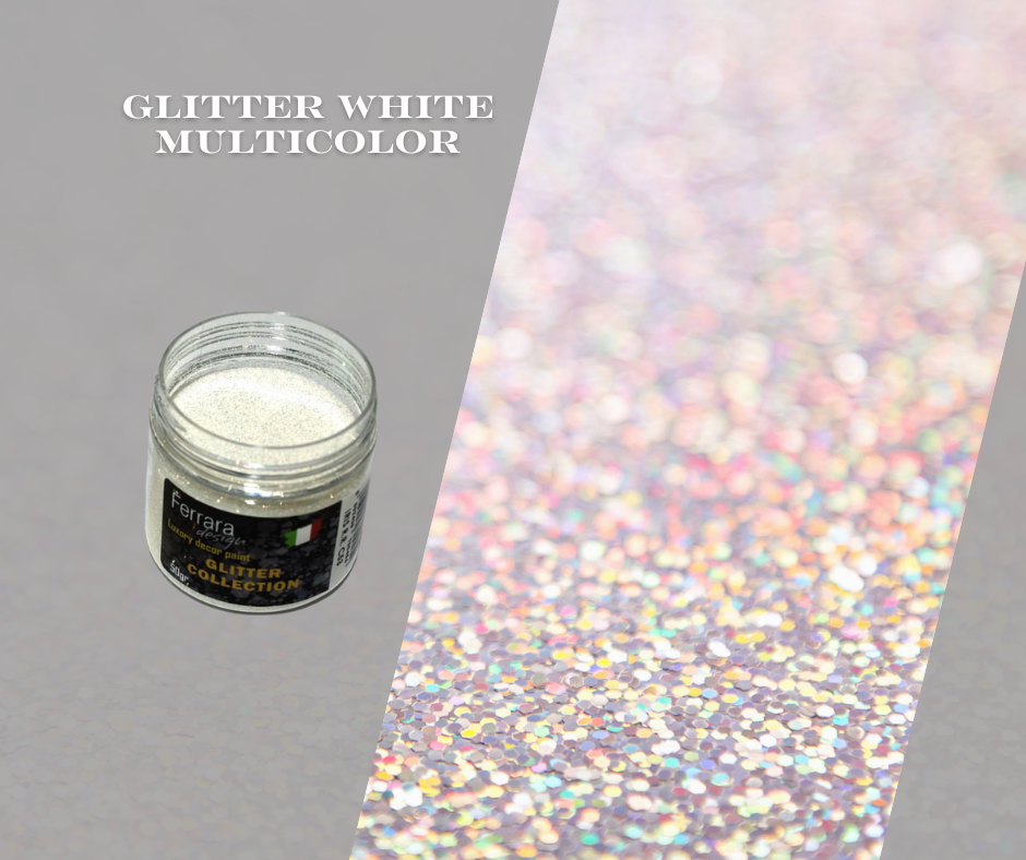 Glitter C53 pentru vopsea decorativa, alb-multicolor, Ferrara Design, 50g