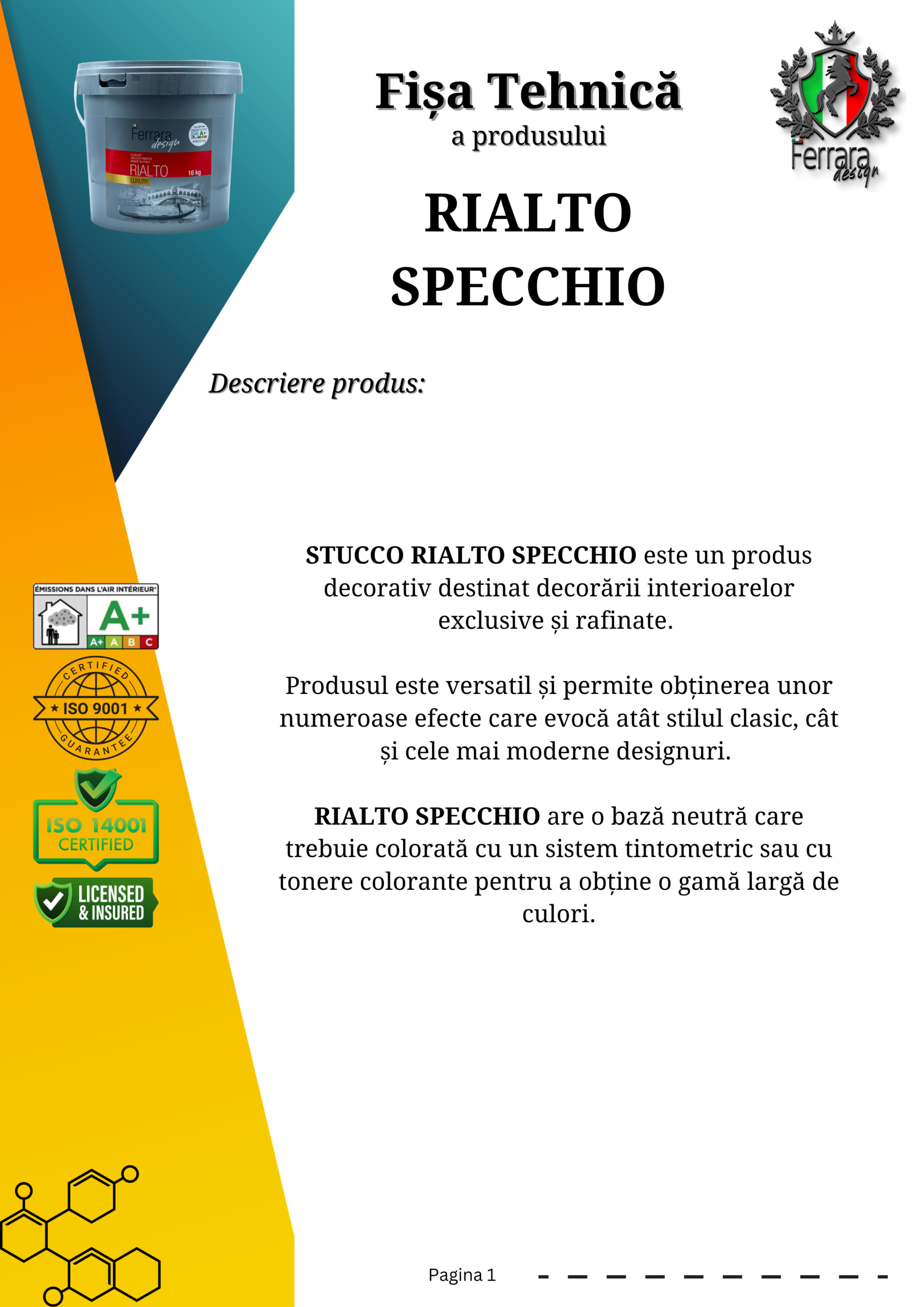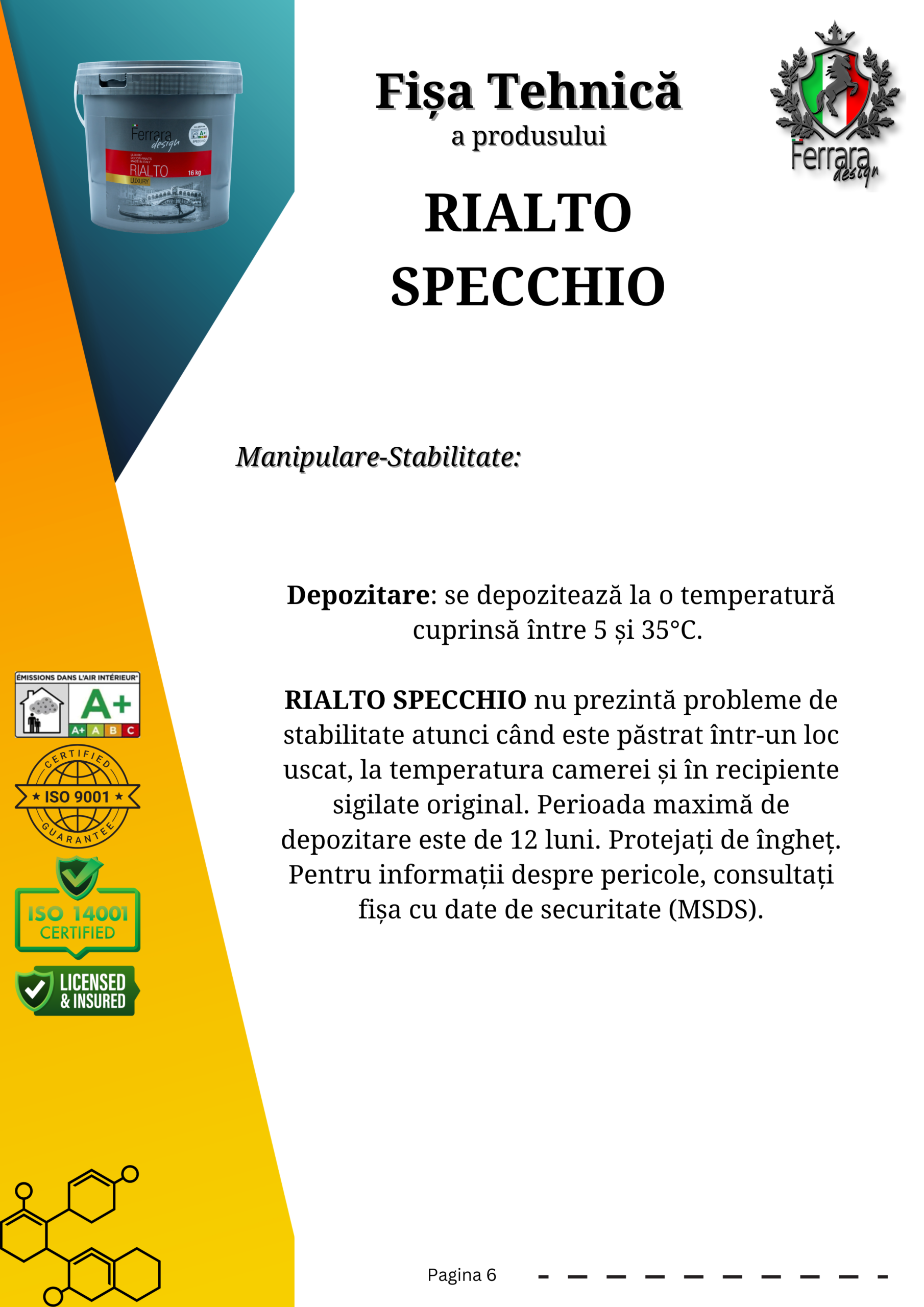 Rialto Luxury este un stucco venetian semisintetic, de inalta calitate cu un finish super lucios, folosit cel mai des pentru efectul de marmura, insa fiind un produs versatil, se poate crea o gama larga de modele.