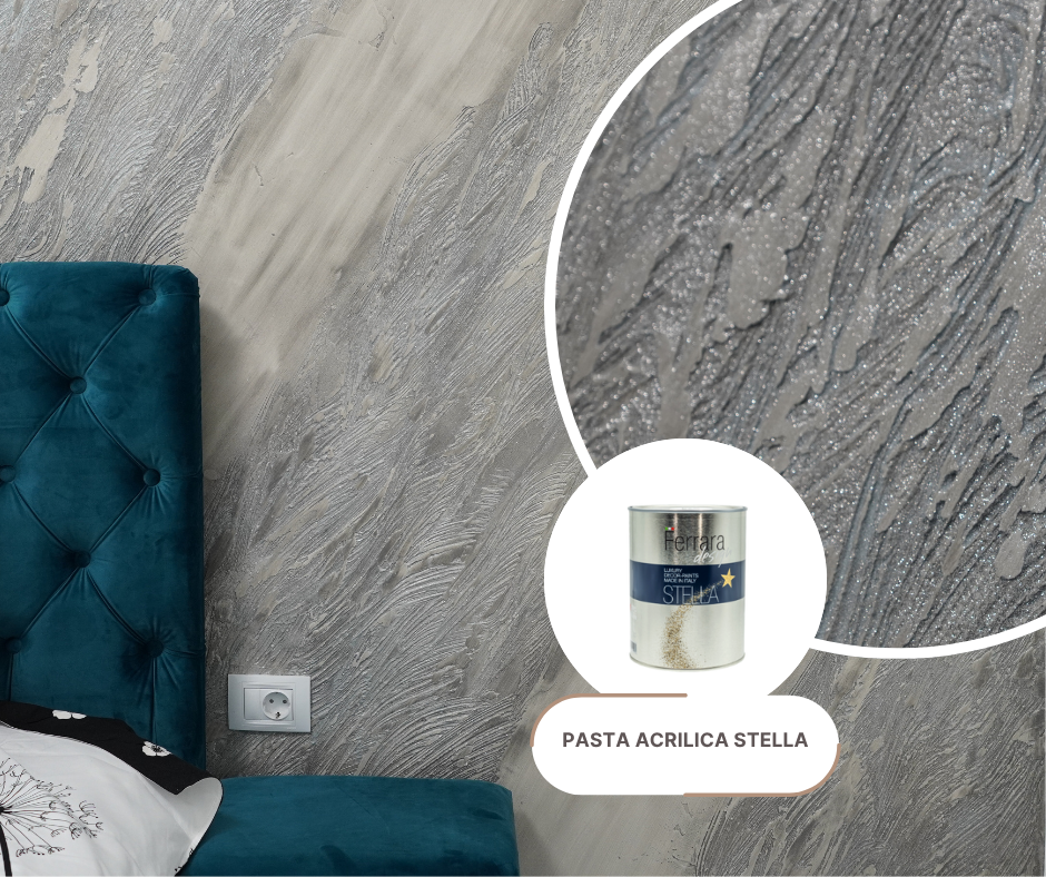 Stella este un finisaj decorativ acrilic, transparent, pe baza de apa, ideal pentru a fi combinat cu glitter. Se folosește pentru a adăuga un efect glamuros pe modele 3D sau pentru a îmbogăți vopselele decorative cu un plus de strălucire.