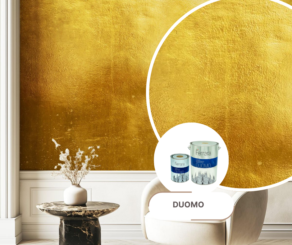 Duomo este o vopsea decorativa lucioasa,cremoasa, tip velatura, ecologica, pe baza de apa, cu efect metalizat.